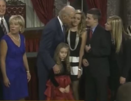 Cette compilation de plusieurs vidéos montre des séances photos de sénateurs et leur famille avec Joe Biden lors de la cérémonie d’intronisation au Sénat. On y voit l’actuel vice-président américain Joe Biden, tripoter avec insistance toutes les fillettes qui viennent à sa rencontre au nez et à la barbe de leurs parents. Il leur fait des bisous, fait des caresses, leur sent et touche les cheveux, leur met ses mains prêt de leur poitrine (une fillette visiblement gênée s’écarte d’ailleurs à 1min05) et va jusqu’à leur susurrer des mots à l’oreille (c’est arrivé avec plusieurs d’entre elles).
